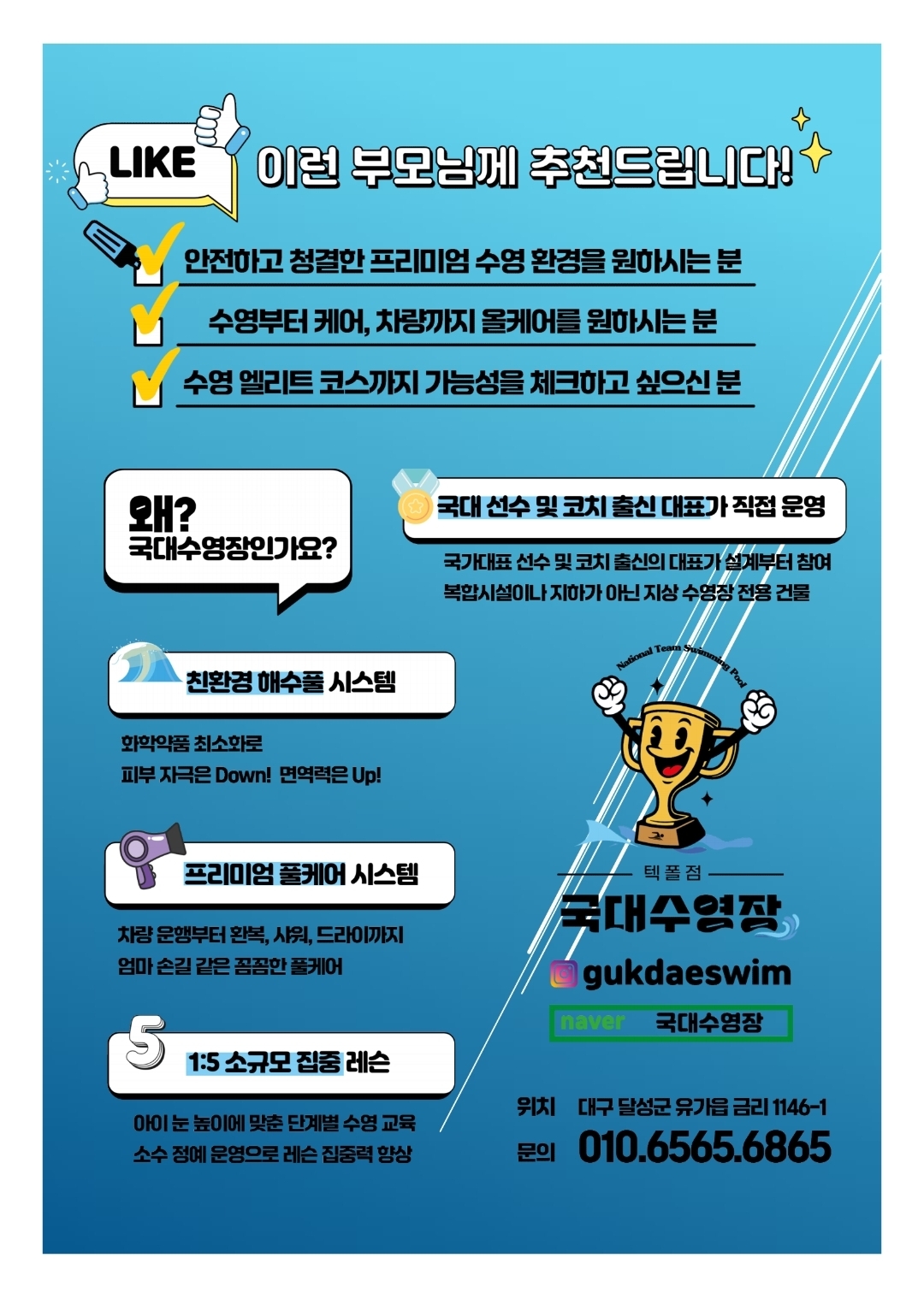 아이의 첫 수영 경험을 신중하게 고려하는 부모님에게 추천할 수 있는 공간입니다.